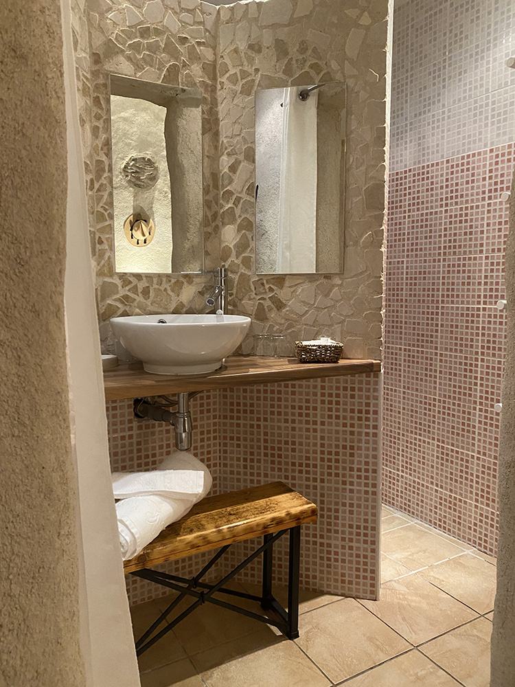 La chambre d'hôtes Rivière dispose d'un lit double en 150cm, d'une salle d'eau privative avec douche à l'italienne ouverte, et d'un WC indépendant.